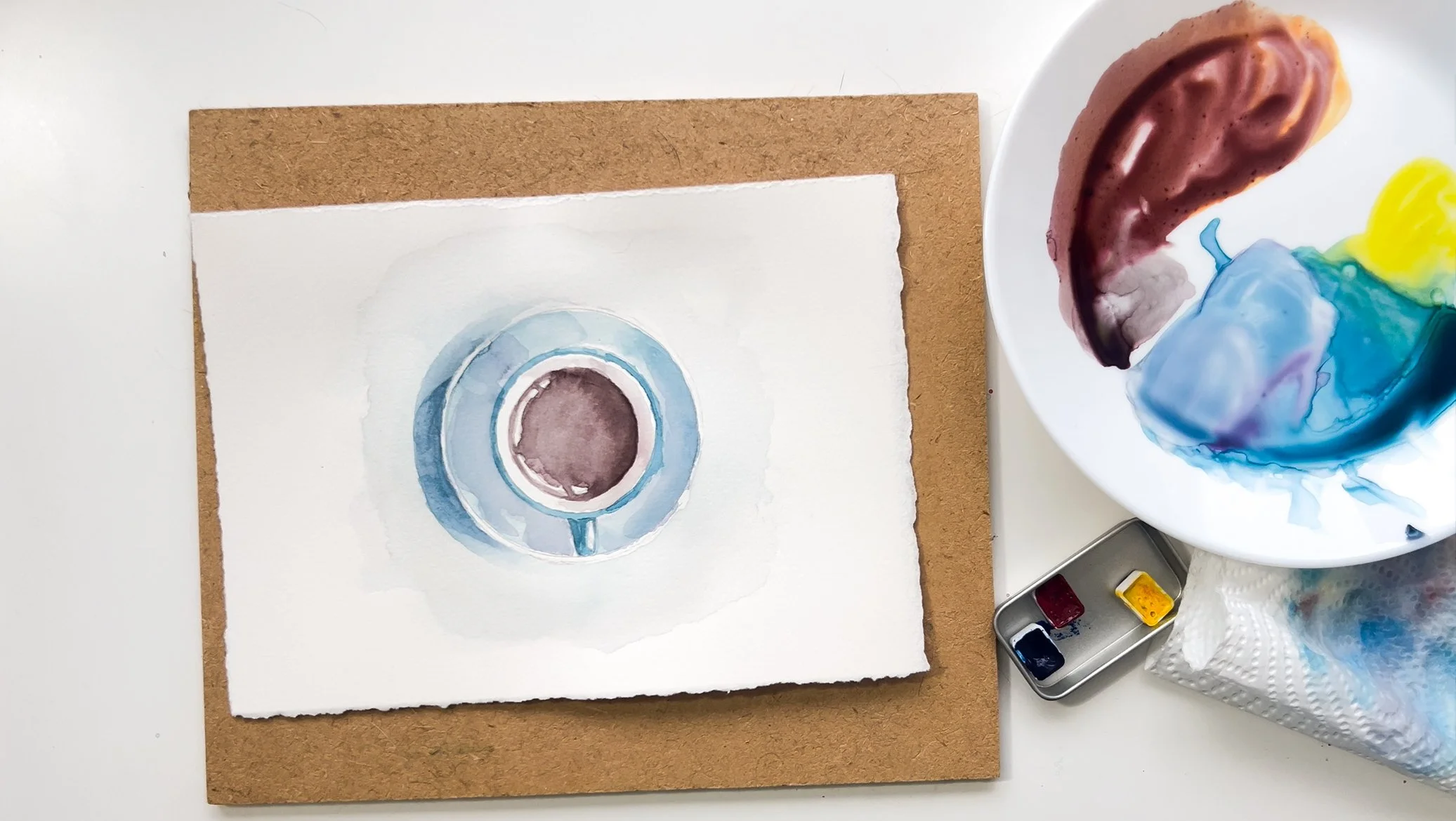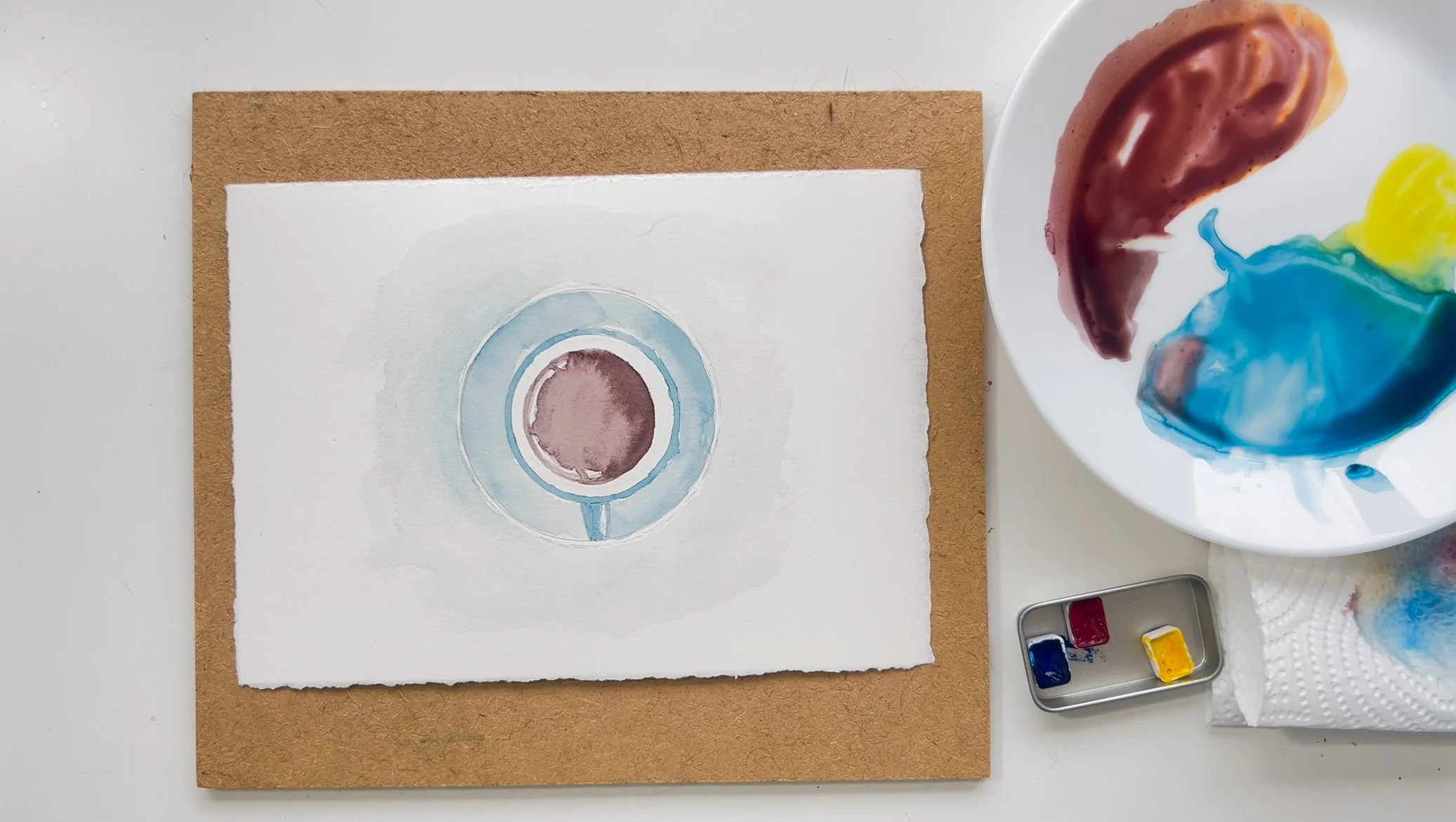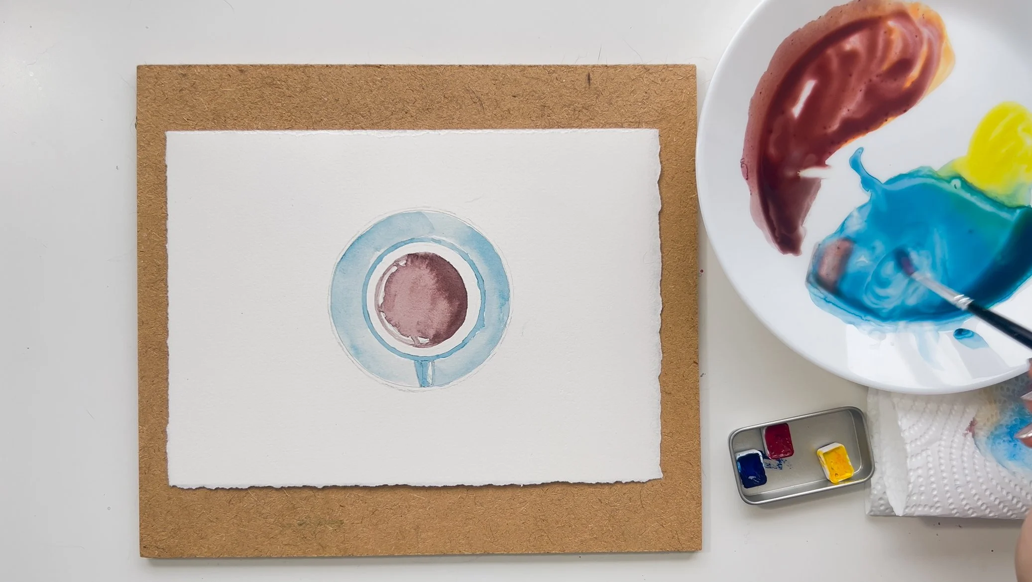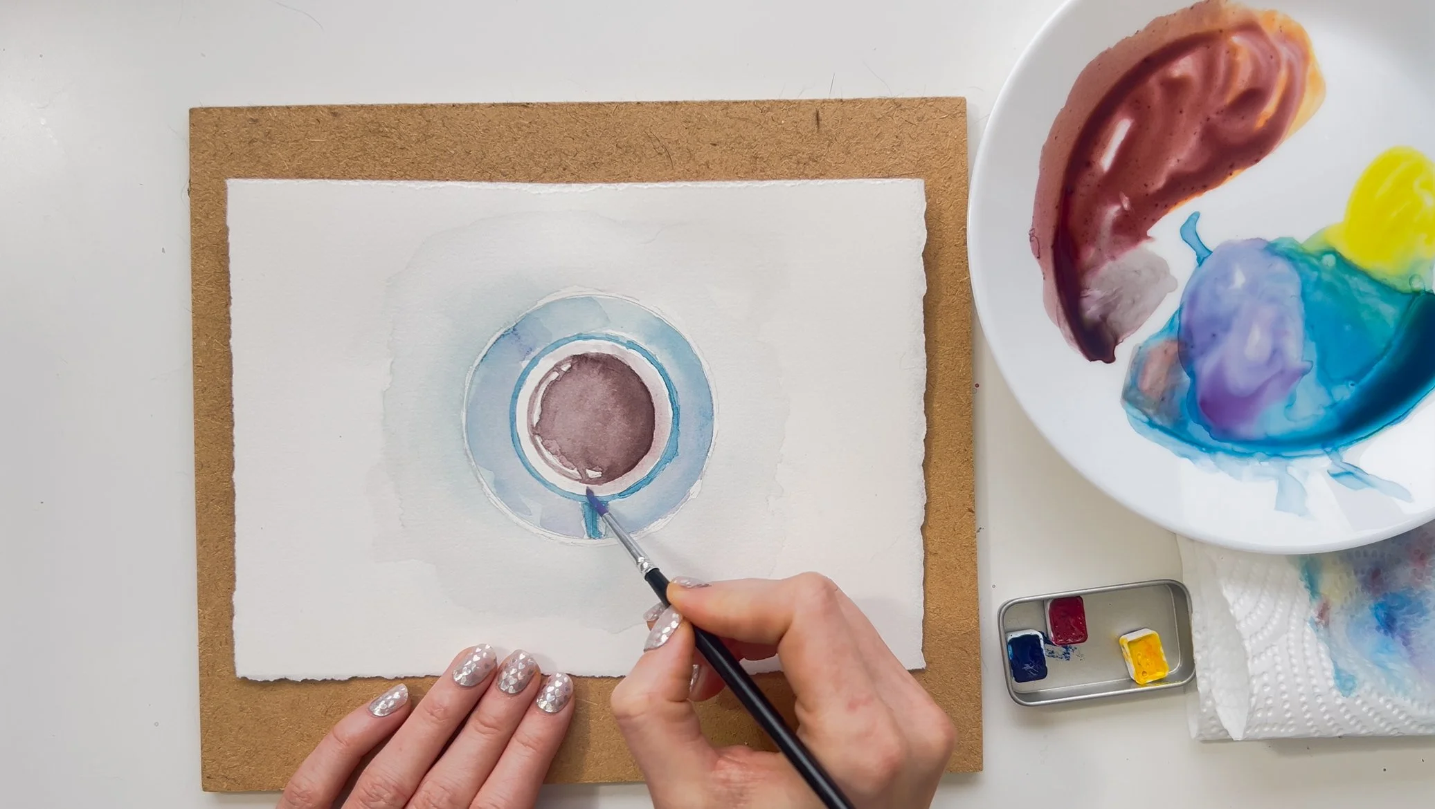 Step 4. Use the same technique to add blue to the saucer.