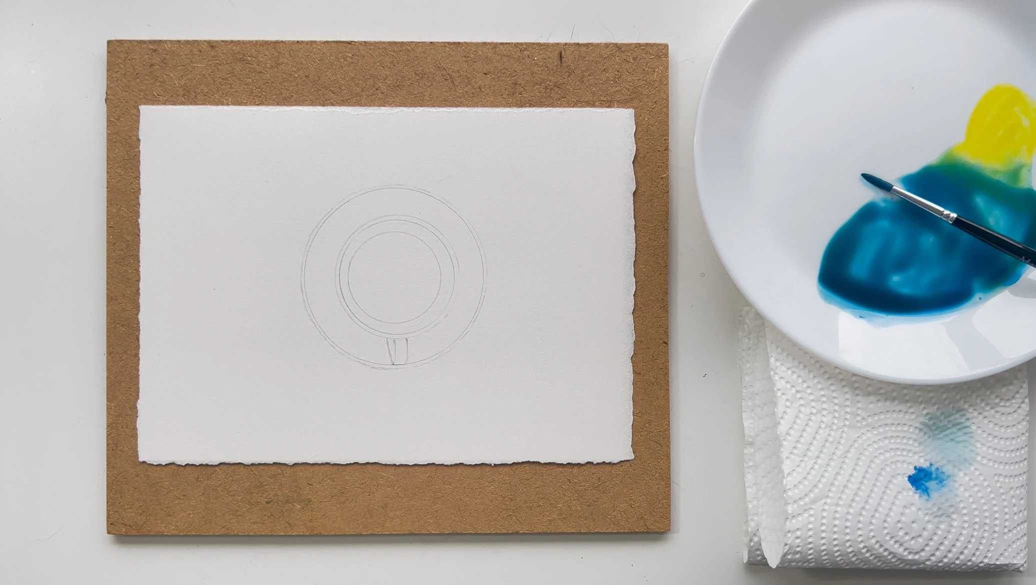 Step 1. Sketch out the coffee cup and the saucer. Use what you’ve got on your table. I used the inside of the tape and the circle stencils (54,46 and 40).