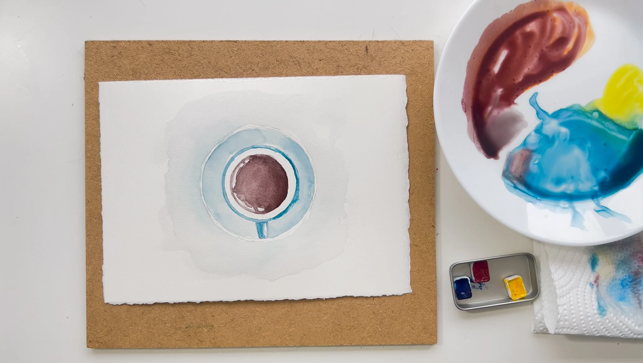 While the paper is still wet ad more dark brown to the right hand side.